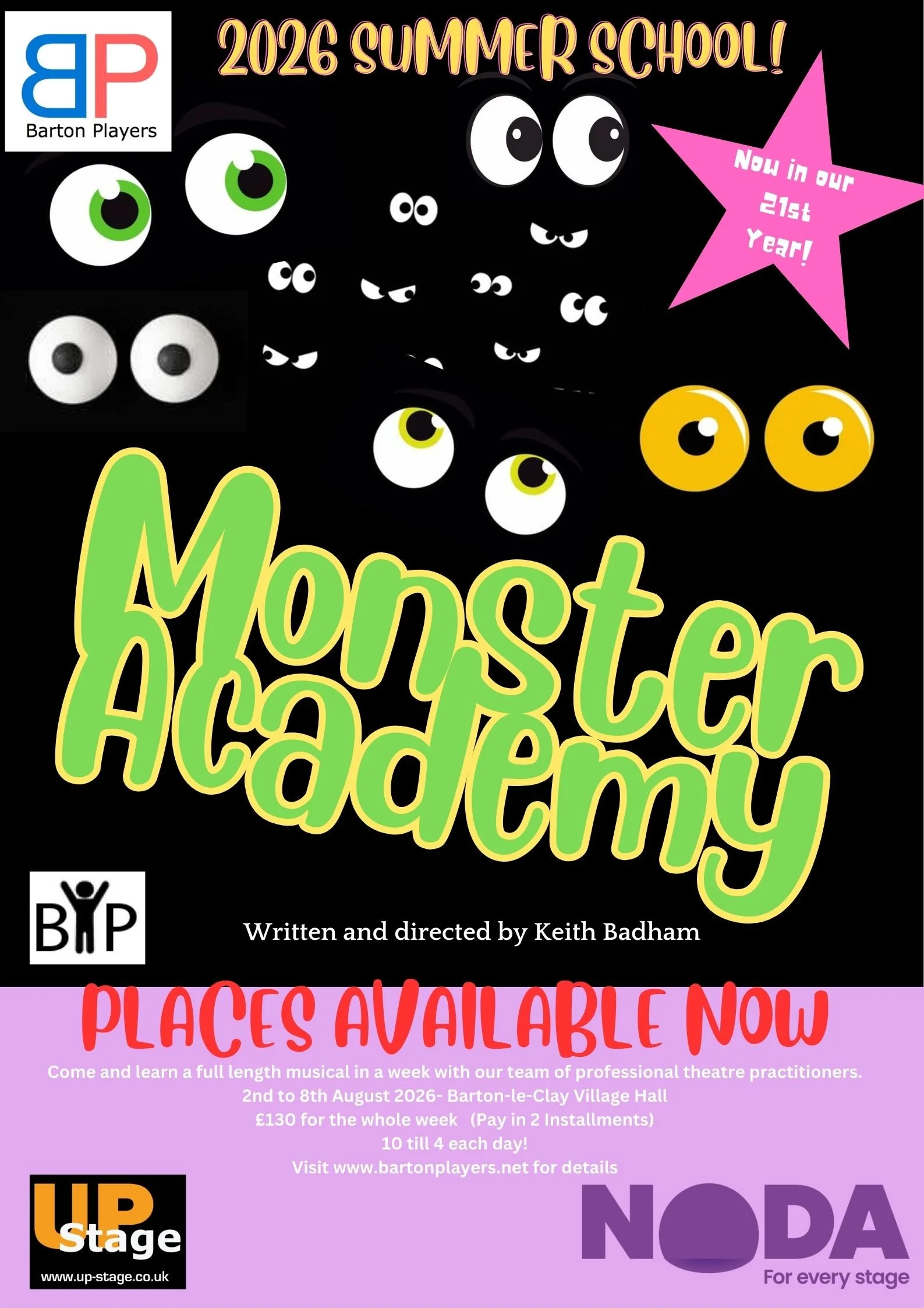 Amazing news!....Our Summer School for 2026 is now on sale....Monster Academy Is a humorous take on the old Scary movies with our tongues (And fangs) firmly in our cheek. Come and learn a full 2 Act Musical in a week under the expert guidance of the experienced professionals at Up-Stage Visit our box office to secure your place Book fast as we expect this one to sell very quickly.....Payment options available....We are in our third decade of this project which is often copied, but never bettered!